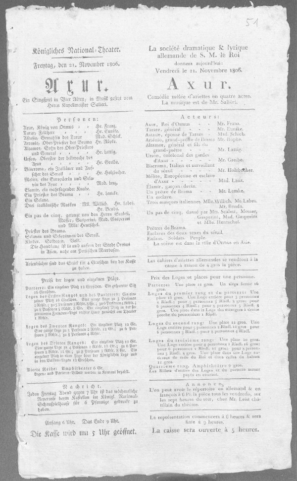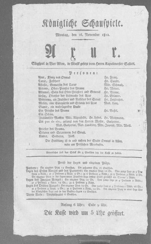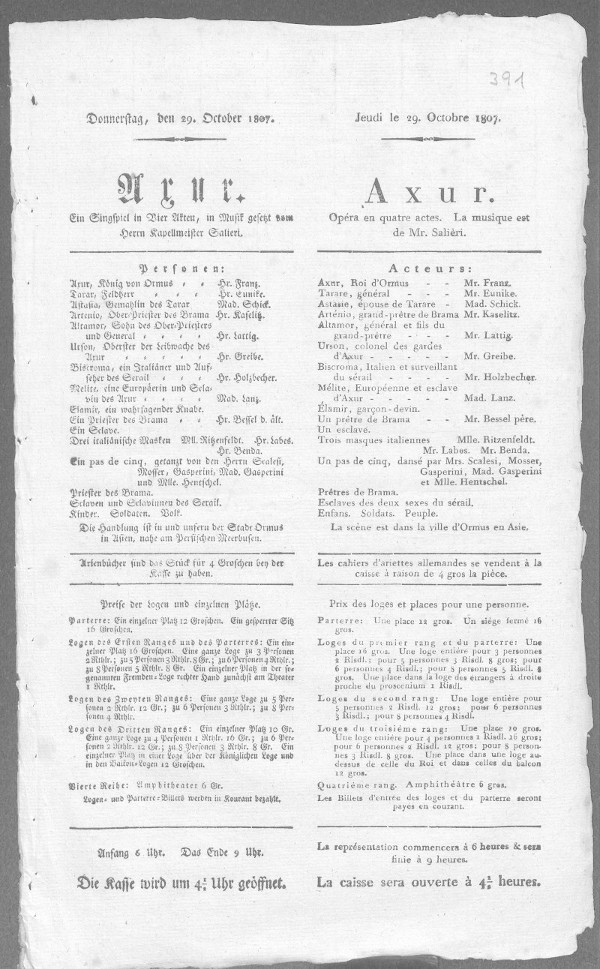 Nationaltheater: Axur (bearbeitet von Klaus Gerlach), Berliner Klassik, hrsg. v. der Berlin-Brandenburgischen Akademie der Wissenschaften, 2003-2013. URL: https://berlinerklassik.bbaw.de/nationaltheater/theaterstueck/107.