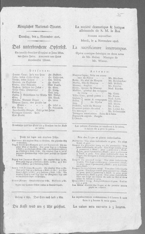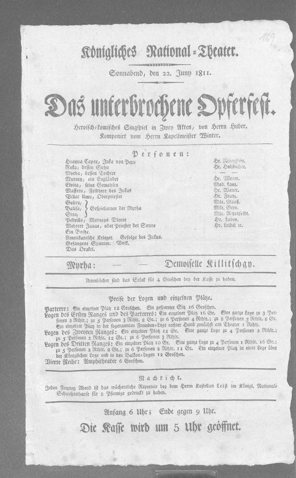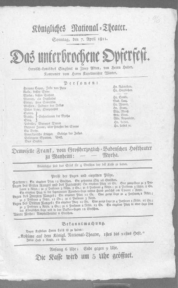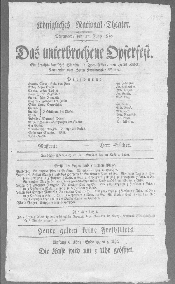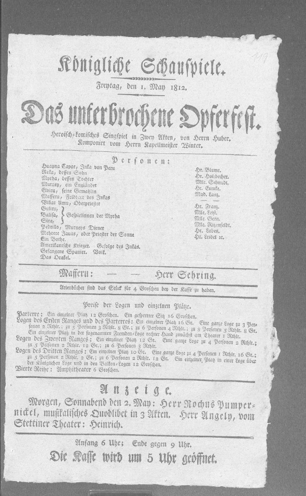 Das unterbrochene Opferfest, Sg. in 2. A. Mus. v. Winter