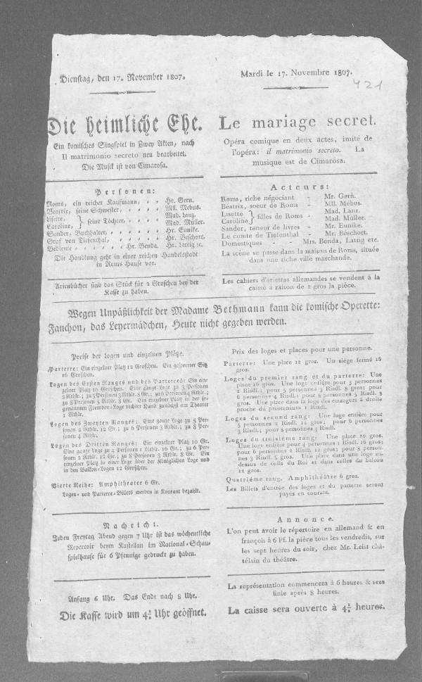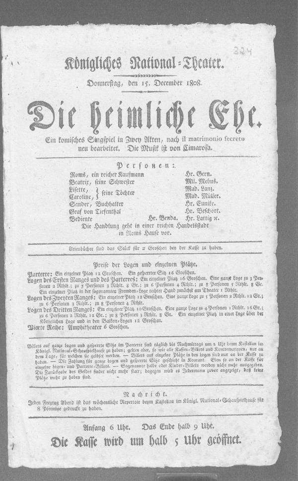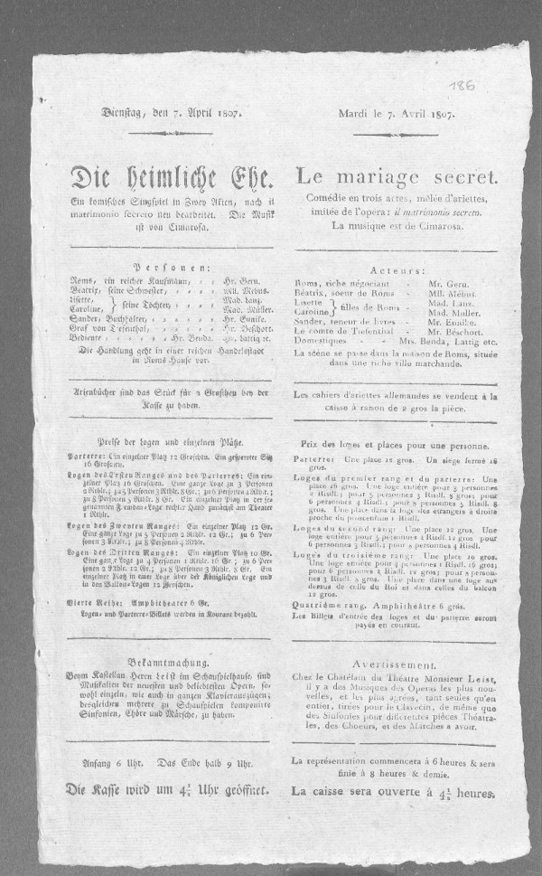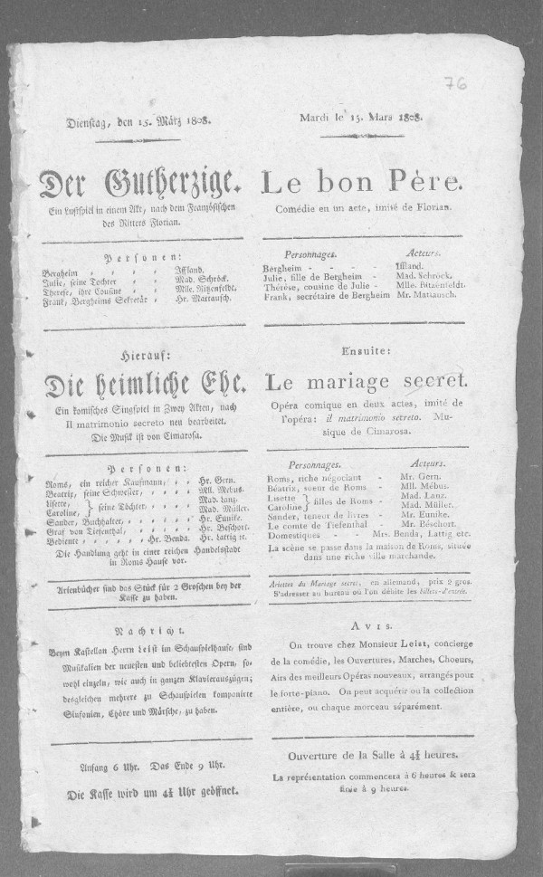 Nationaltheater: heimliche Ehe, Die (bearbeitet von Klaus Gerlach), Berliner Klassik, hrsg. v. der Berlin-Brandenburgischen Akademie der Wissenschaften, 2003-2013. URL: https://berlinerklassik.bbaw.de/nationaltheater/theaterstueck/13.