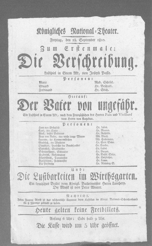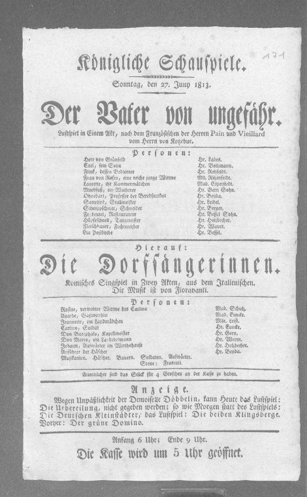 Nationaltheater: Vater von ungefähr, Der (bearbeitet von Klaus Gerlach), Berliner Klassik, hrsg. v. der Berlin-Brandenburgischen Akademie der Wissenschaften, 2003-2013. URL: https://berlinerklassik.bbaw.de/nationaltheater/theaterstueck/135.