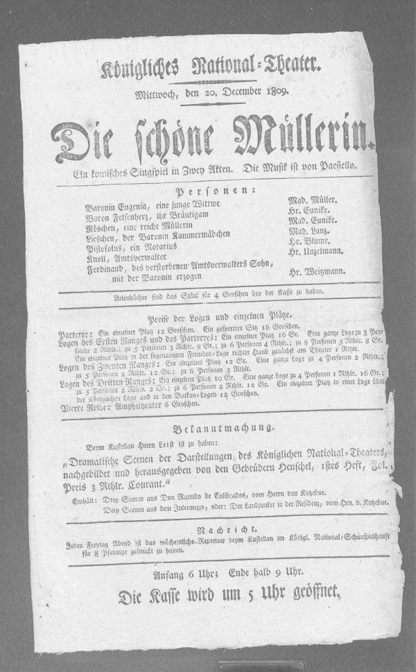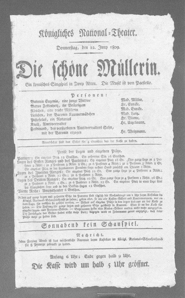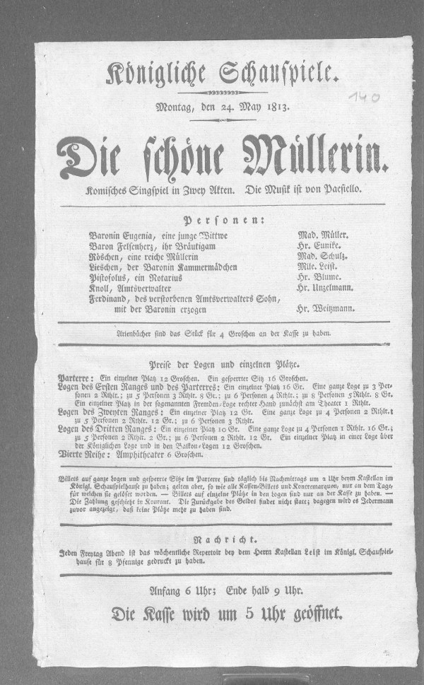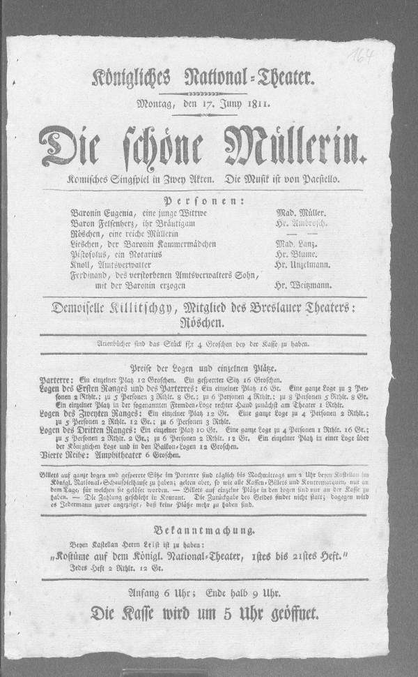 Nationaltheater: schöne Müllerin, Die (bearbeitet von Klaus Gerlach), Berliner Klassik, hrsg. v. der Berlin-Brandenburgischen Akademie der Wissenschaften, 2003-2013. URL: https://berlinerklassik.bbaw.de/nationaltheater/theaterstueck/184.
