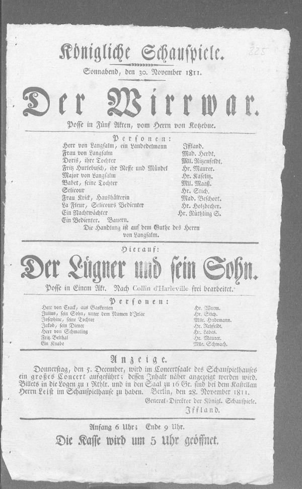 Nationaltheater: Wirrwarr, Der (bearbeitet von Klaus Gerlach), Berliner Klassik, hrsg. v. der Berlin-Brandenburgischen Akademie der Wissenschaften, 2003-2013. URL: https://berlinerklassik.bbaw.de/nationaltheater/theaterstueck/37.