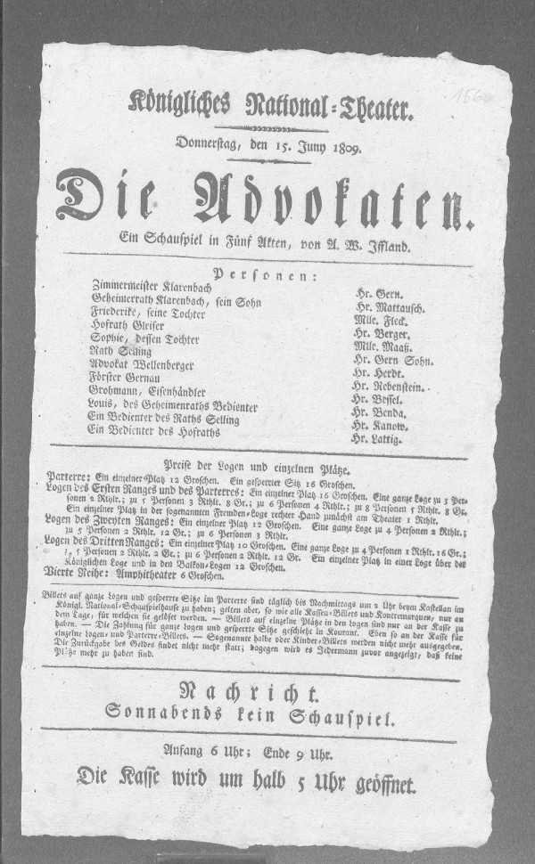 Nationaltheater: Advokaten, Die (bearbeitet von Klaus Gerlach), Berliner Klassik, hrsg. v. der Berlin-Brandenburgischen Akademie der Wissenschaften, 2003-2013. URL: https://berlinerklassik.bbaw.de/nationaltheater/theaterstueck/409.