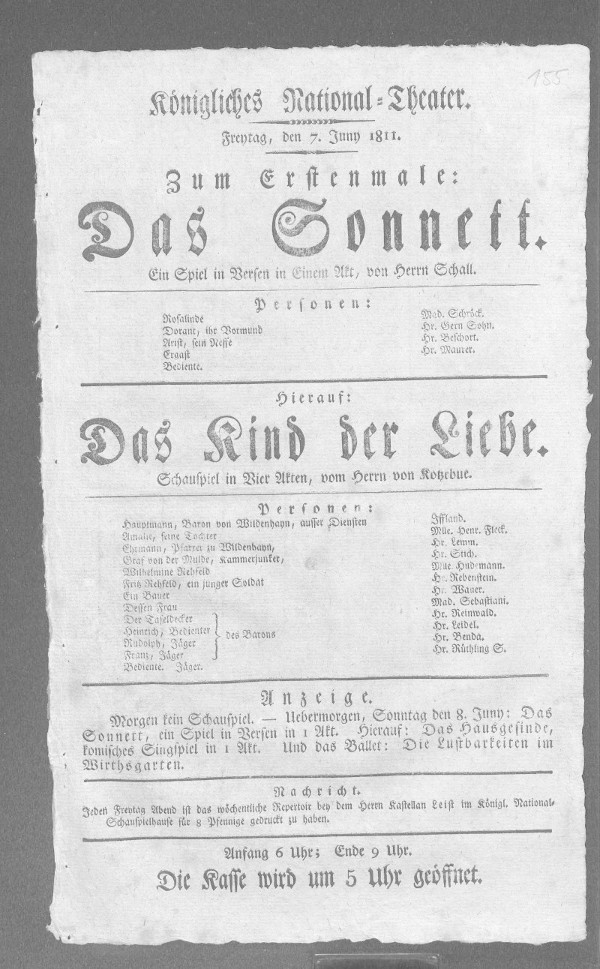 Nationaltheater: Kind der Liebe, Das (bearbeitet von Klaus Gerlach), Berliner Klassik, hrsg. v. der Berlin-Brandenburgischen Akademie der Wissenschaften, 2003-2013. URL: https://berlinerklassik.bbaw.de/nationaltheater/theaterstueck/542.