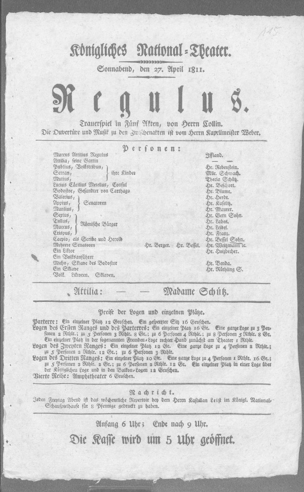 Nationaltheater: Regulus (bearbeitet von Klaus Gerlach), Berliner Klassik, hrsg. v. der Berlin-Brandenburgischen Akademie der Wissenschaften, 2003-2013. URL: https://berlinerklassik.bbaw.de/nationaltheater/theaterstueck/59.
