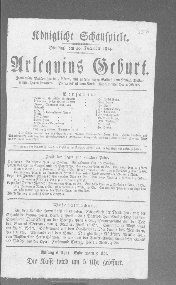 Nationaltheater: Arlequins Geburt (bearbeitet von Klaus Gerlach), Berliner Klassik, hrsg. v. der Berlin-Brandenburgischen Akademie der Wissenschaften, 2003-2013. URL: https://berlinerklassik.bbaw.de/nationaltheater/theaterstueck/68.