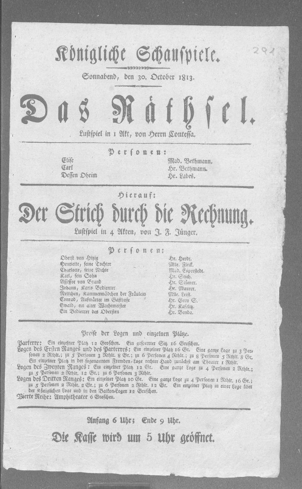 Nationaltheater: Strich durch die Rechnung, Der (bearbeitet von Klaus Gerlach), Berliner Klassik, hrsg. v. der Berlin-Brandenburgischen Akademie der Wissenschaften, 2003-2013. URL: https://berlinerklassik.bbaw.de/nationaltheater/theaterstueck/705.
