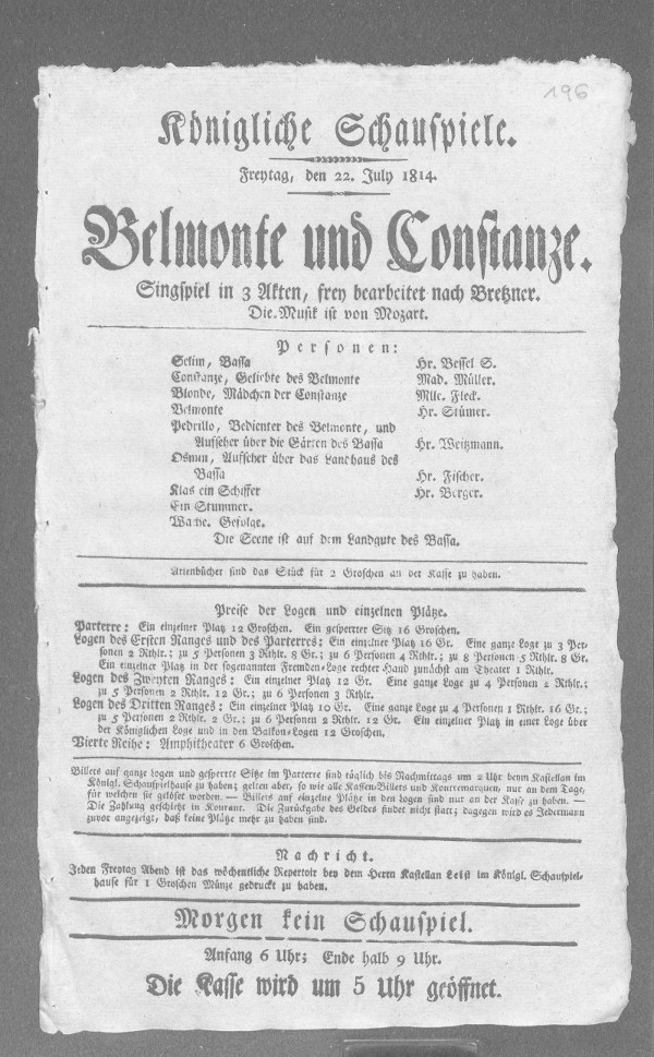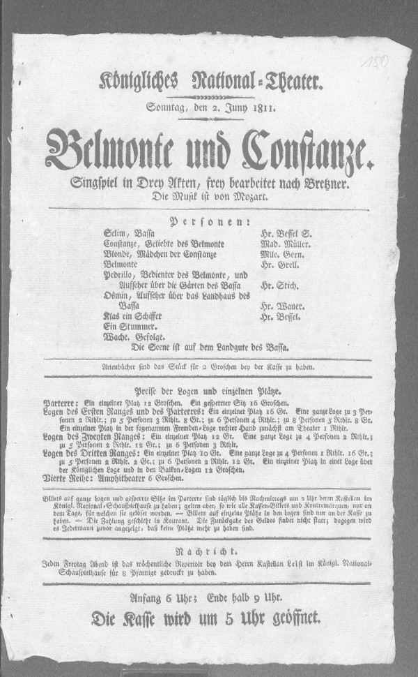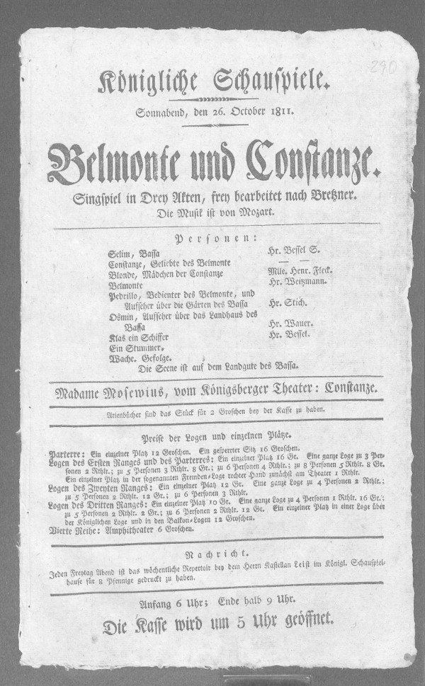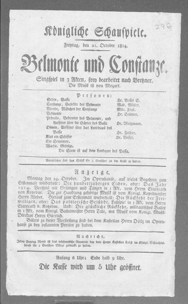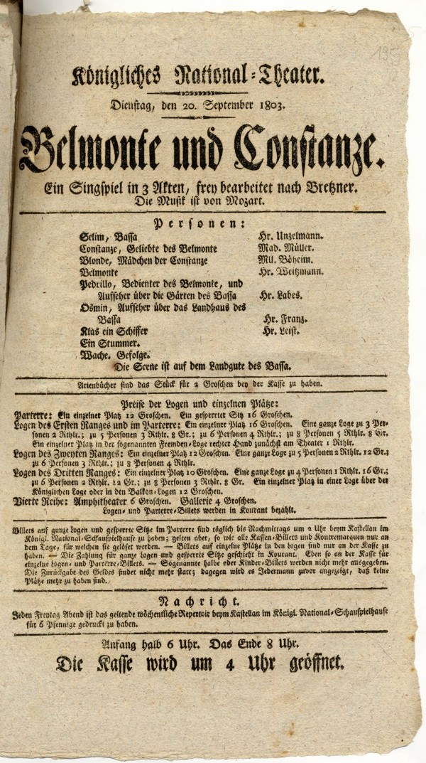 Belmonte und Constanze, Sg. in 3. A. Musik v. Mozart